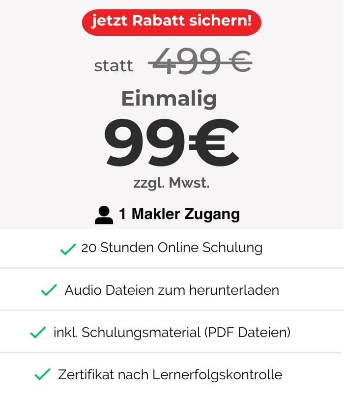 Nein. Zur Bearbeitung des Immobilienmakler-Kurses entstehen keine weiteren Kosten.